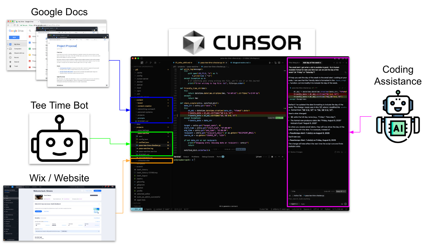 Development: Started using Cursor IDE manage everything (markdown files, code, notes) all in one place. Reduced the need to to jump between apps.